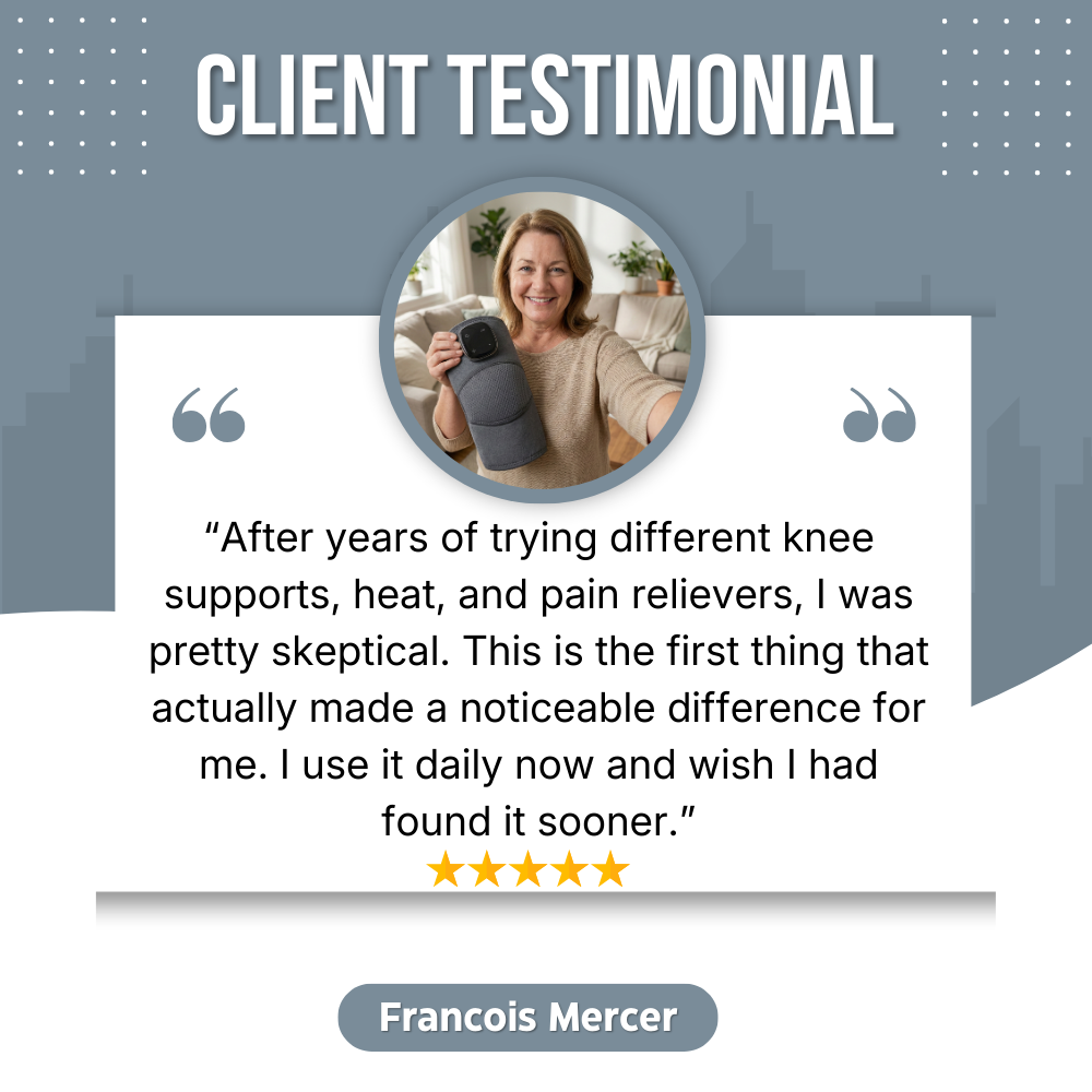RecoverPro is different because it was designed around how knee pain actually works. It combines heat, medical-grade compression, and gentle vibration to address stiffness, swelling, and overactive pain signals at the same time. This multi-pathway approach helps relief last longer and makes RecoverPro more effective than single-method solutions you may have already tried.